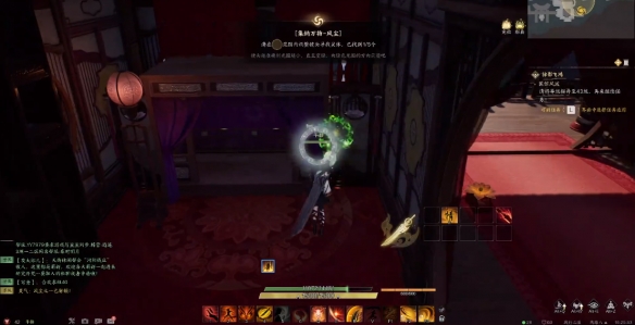 1、进入风尘客房,找到点着灯笼的床,在床尾的支架上有灵体。