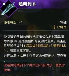 3、该道具是一个限时道具,此时点击通明剑术前往绝锋谷拔剑;
